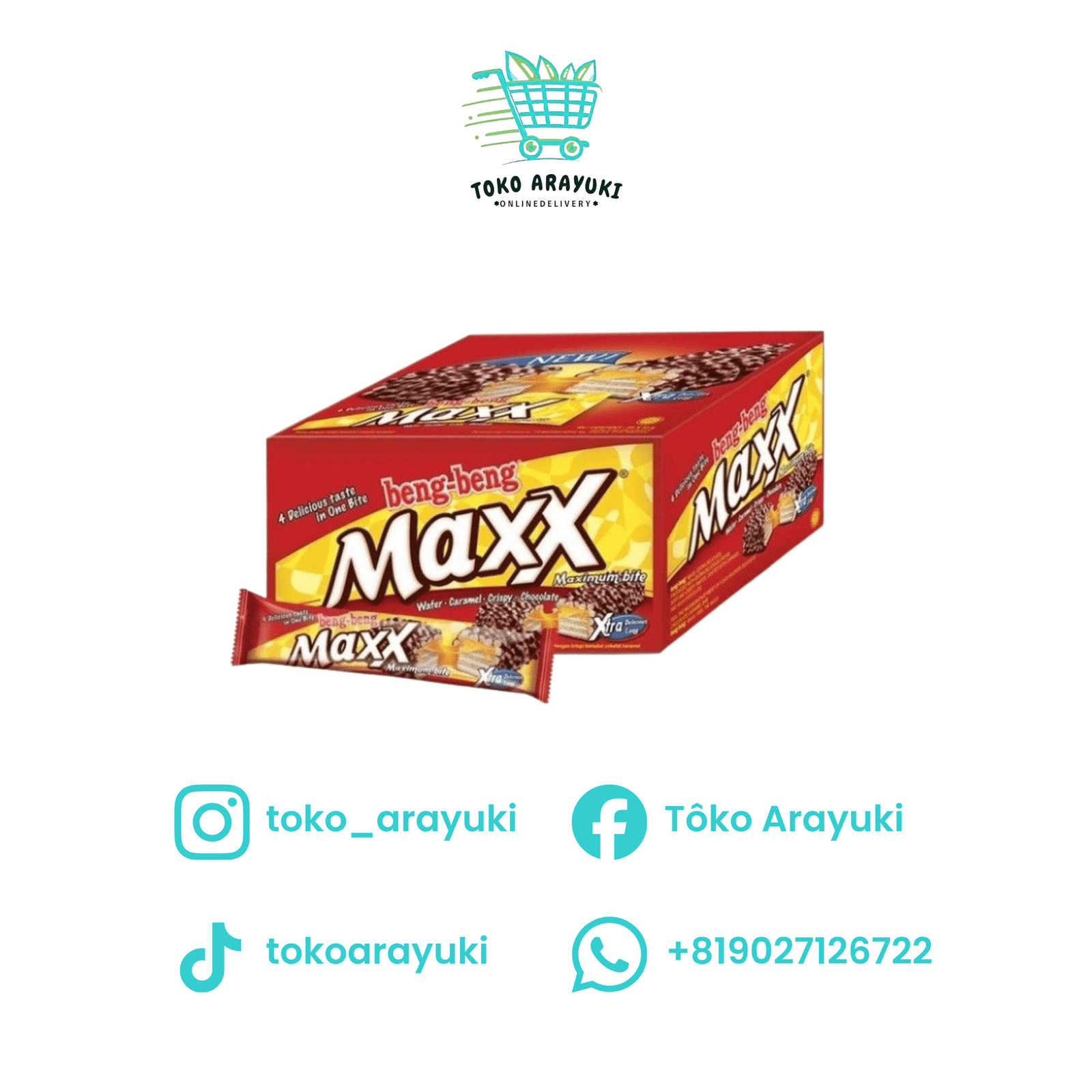 Beng-Beng Max adalah wafer tebal dengan lapisan cokelat, karamel, dan krim yang kaya, diperkaya potongan kacang renyah. Perpaduan tekstur dan rasa manis-gurih yang intens membuatnya nikmat untuk dinikmati kapan saja.