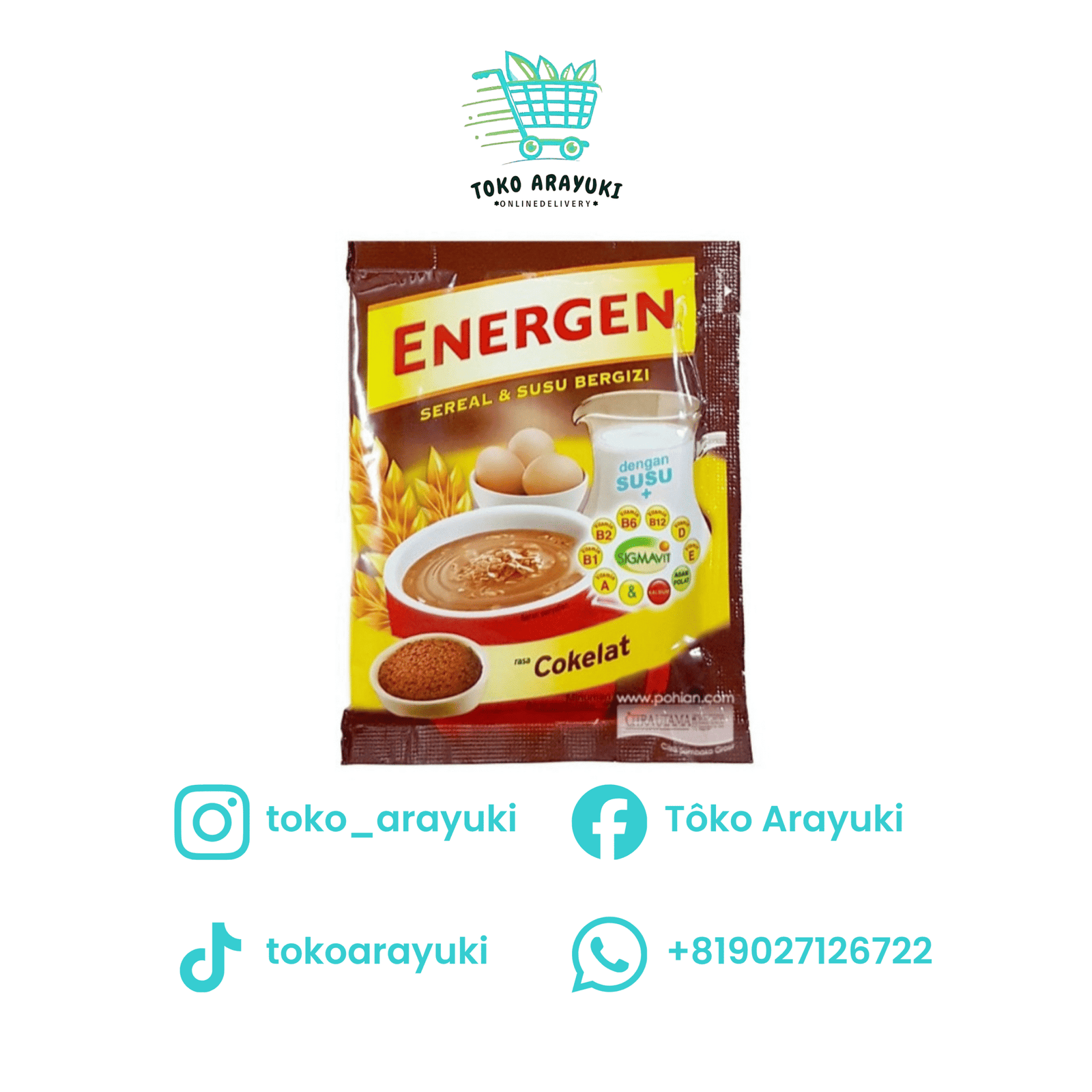 Energen Cokelat adalah minuman sereal instan bergizi dengan rasa cokelat yang lezat, praktis, dan mudah disajikan. Minuman ini mengandung kombinasi sereal (terigu, oat, jagung), susu, dan telur, serta diperkaya dengan berbagai vitamin (A, B1, B2, B6, B12, D, E, asam folat) dan kalsium untuk energi, nutrisi, dan membantu memenuhi kebutuhan harian.