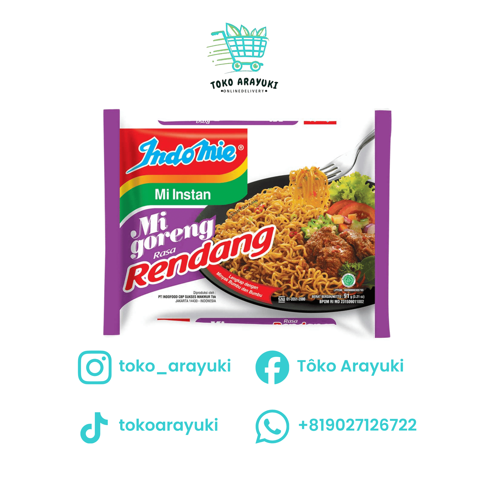 Indomie Mi Goreng Rendang adalah salah satu varian premium dari seri “Kuliner Indonesia” yang menyajikan cita rasa otentik masakan rendang daging khas Padang dalam bentuk mi instan goreng. Produk ini menonjolkan kekayaan bumbu rempah yang sangat pekat, gurih, dan memiliki aroma kelapa sangrai yang khas, serta dilengkapi dengan taburan topping potongan daging rendang kering.