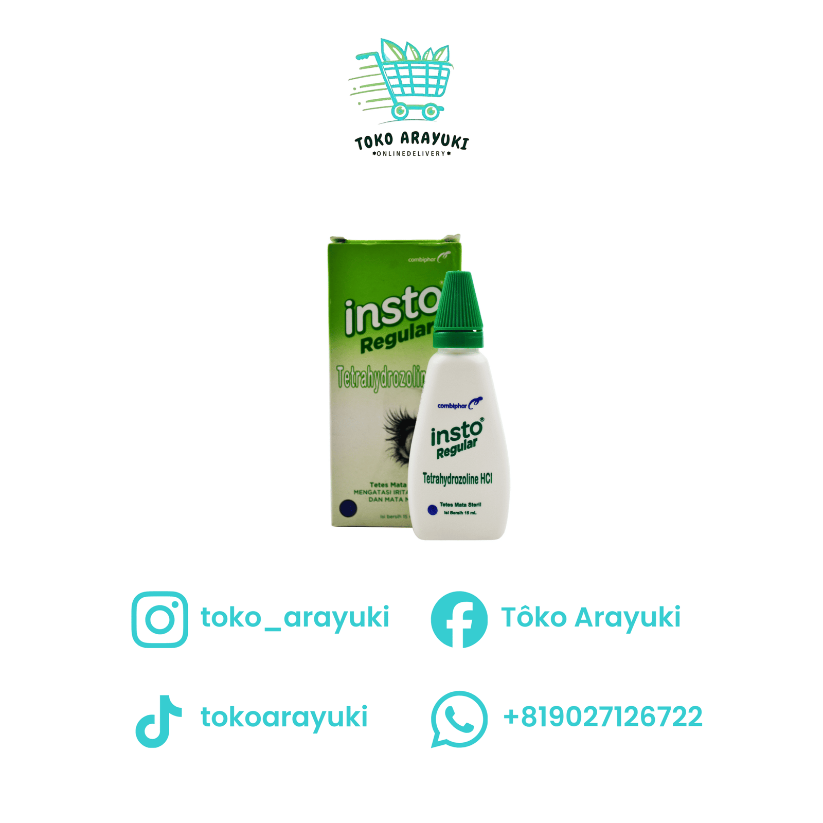 Insto Reguler Eye Drop mengandung zat aktif Tetrahidrozolin HCl dan Benzalkonium Klorida, digunakan untuk mengatasi mata merah dan rasa perih akibat iritasi mata ringan yang dapat disebabkan karena asap, debu dan lainnya.
