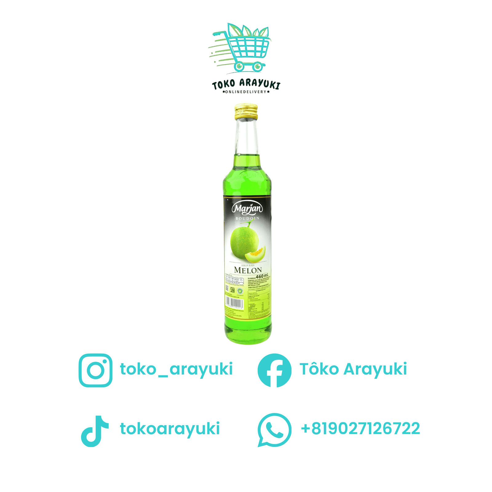 Marjan melon adalah sirup dengan rasa melon yang manis dan segar, dibuat dari sari buah melon pilihan dengan gula asli. Sirup ini cocok untuk dinikmati dingin dengan es, dijadikan campuran minuman seperti es campur atau koktail, dan dapat digunakan untuk membuat kreasi makanan penutup seperti puding. Sirup ini terbuat dari bahan-bahan berkualitas dan memiliki aroma melon yang khas dan kuat.