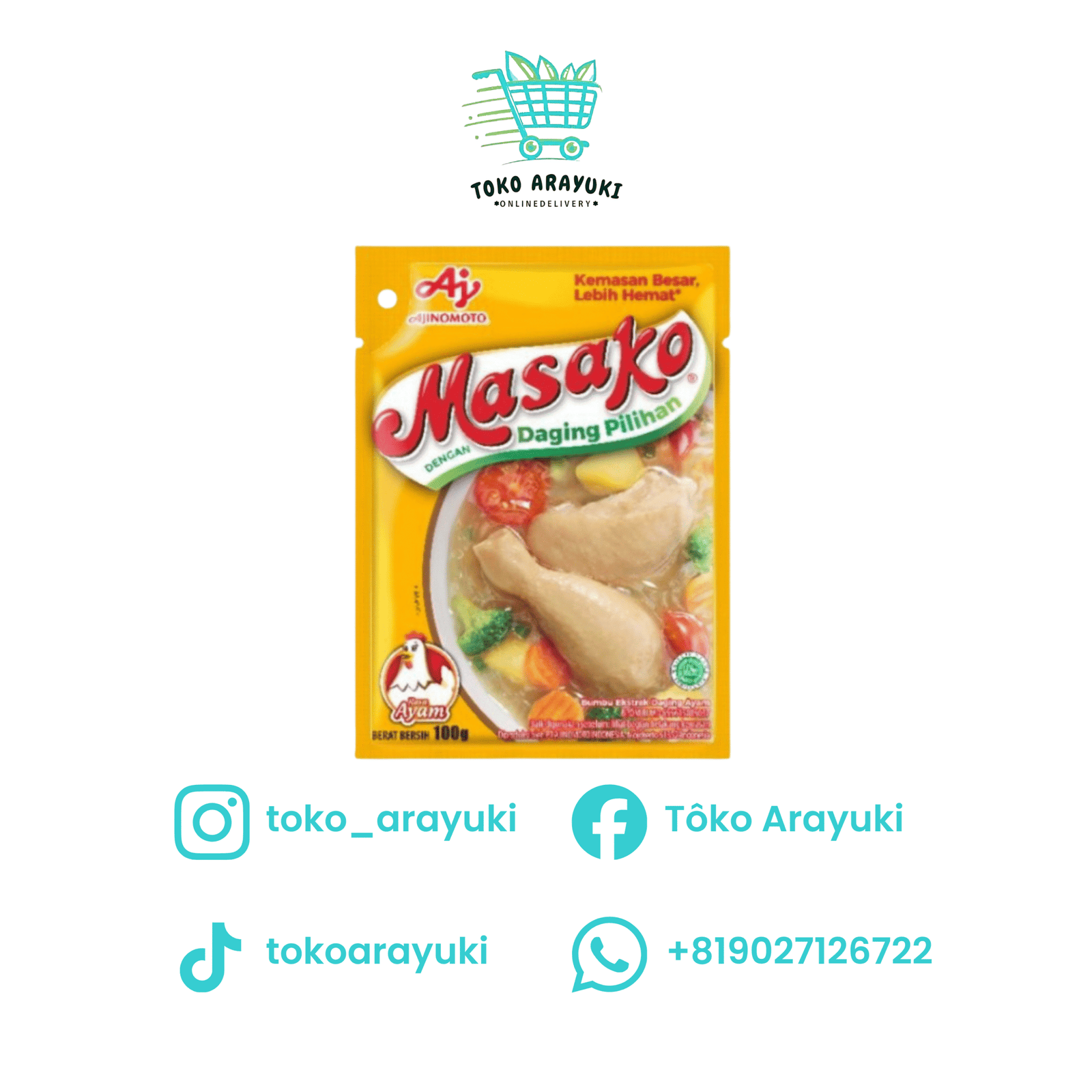 Masako ayam adalah bumbu kaldu penyedap rasa yang terbuat dari ekstrak daging ayam asli berkualitas, bumbu, dan rempah-rempah pilihan, yang memberikan rasa dan aroma gurih mirip kaldu buatan sendiri. Bumbu ini praktis digunakan untuk berbagai jenis masakan seperti sup, tumisan, dan gorengan.