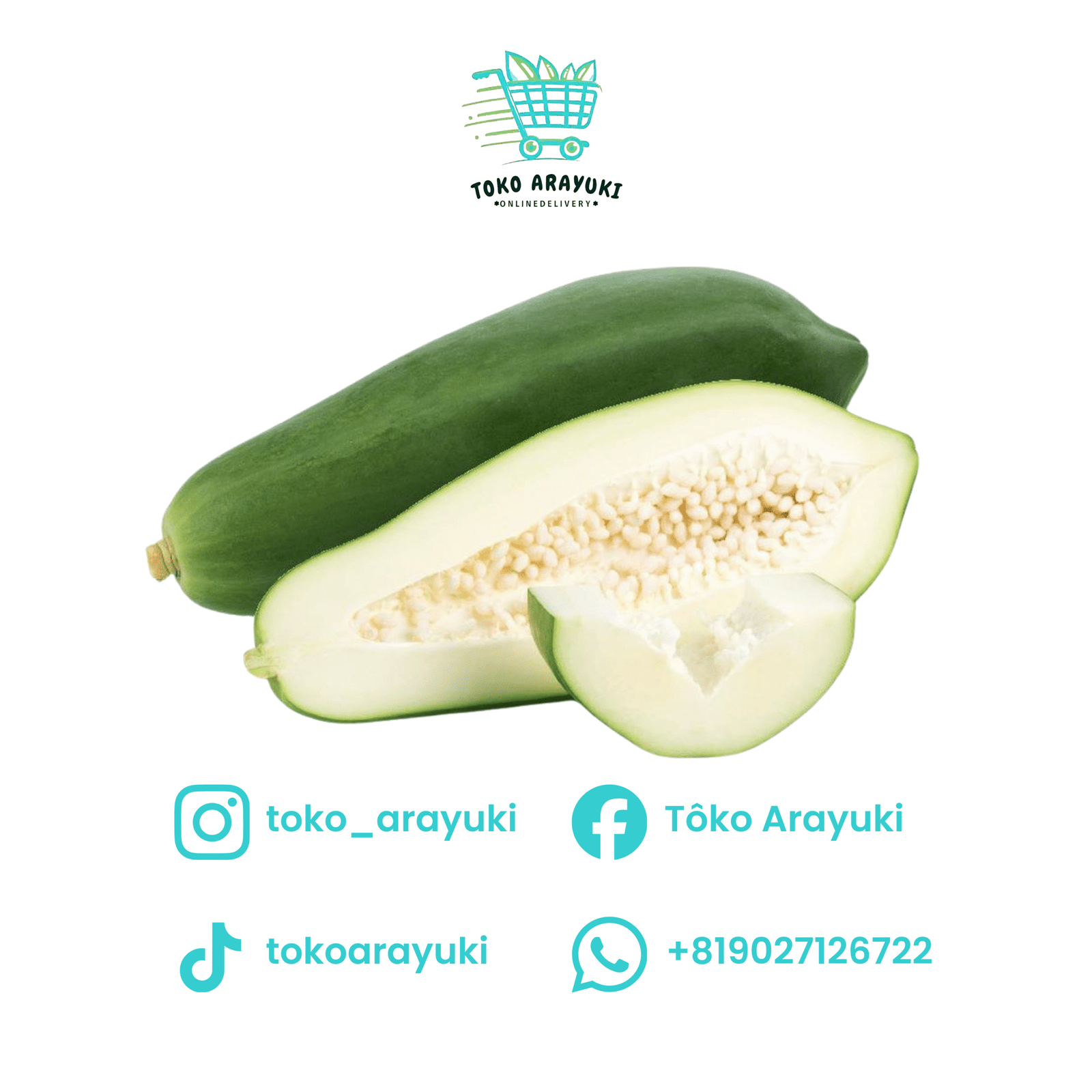 Pepaya muda adalah buah pepaya yang belum matang, ciri-cirinya adalah kulit hijau, daging buah keras, renyah, berwarna putih kehijauan, rasanya cenderung tawar atau sedikit asam, serta mengandung enzim papain yang baik untuk pencernaan dan kaya serat serta vitamin C, sering diolah menjadi sayuran seperti gudeg, rujak, atau acar karena teksturnya yang unik.
