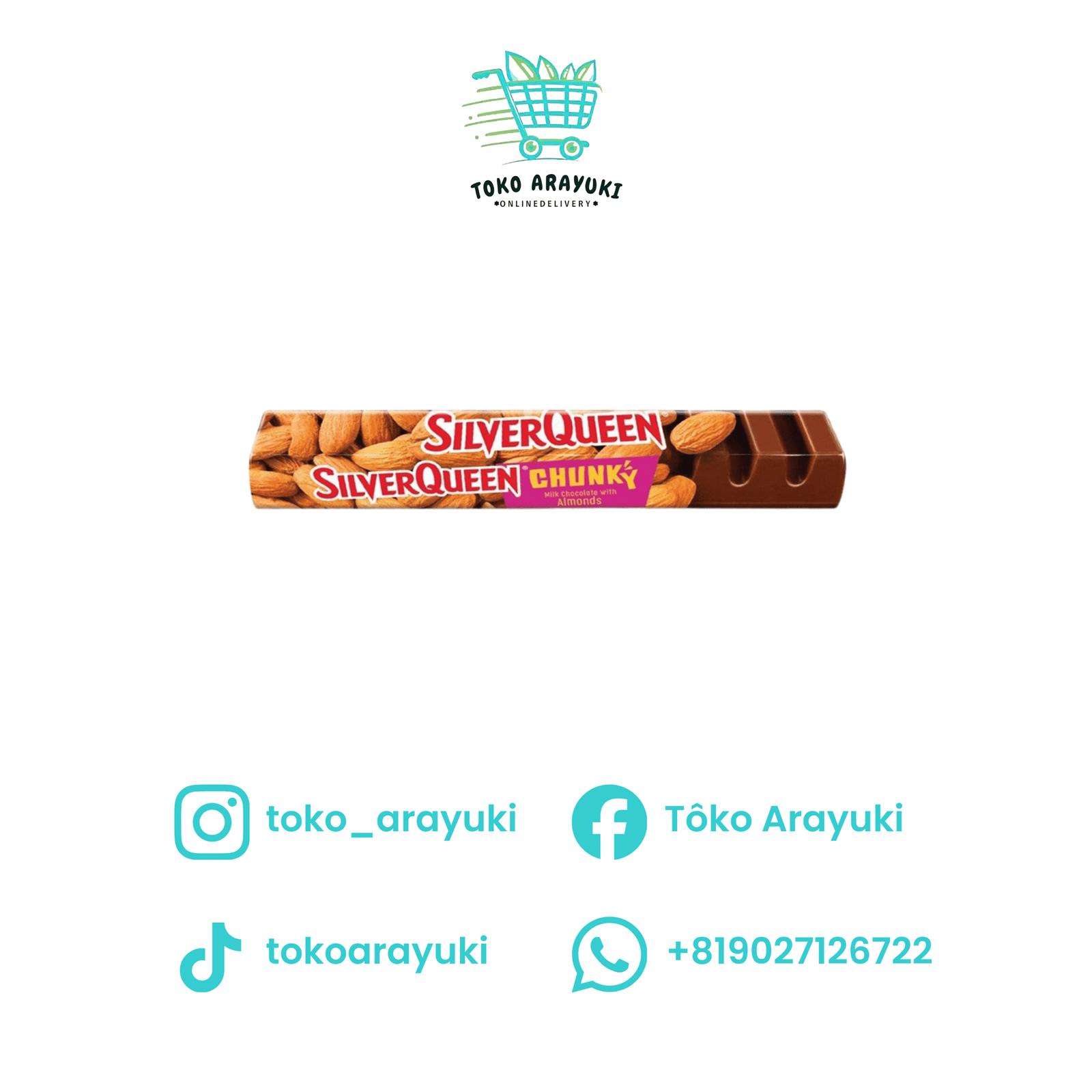 Silverqueen Chunky Bar adalah cokelat batang premium yang kaya rasa, dipenuhi potongan kacang dan biskuit renyah di setiap gigitannya. Perpaduan cokelat manis dan tekstur crunchy membuatnya nikmat untuk dinikmati kapan saja.