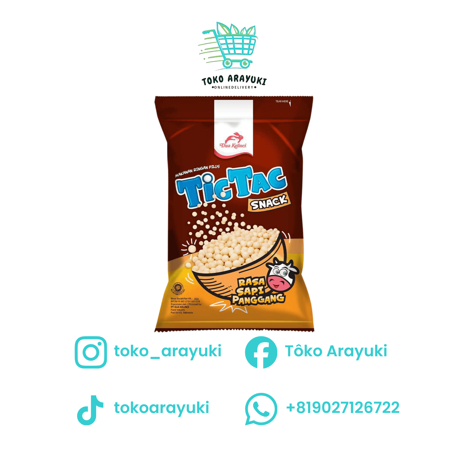 TicTac adalah merek camilan butiran tepung renyah (pilus) produksi Dua Kelinci, salah satu produsen makanan ringan terbesar di Indonesia. Camilan ini dikenal karena tekstur garingnya yang khas dan varian rasa yang beragam, menjadikannya pilihan favorit untuk dimakan langsung atau sebagai teman makan nasi dan hidangan berkuah.